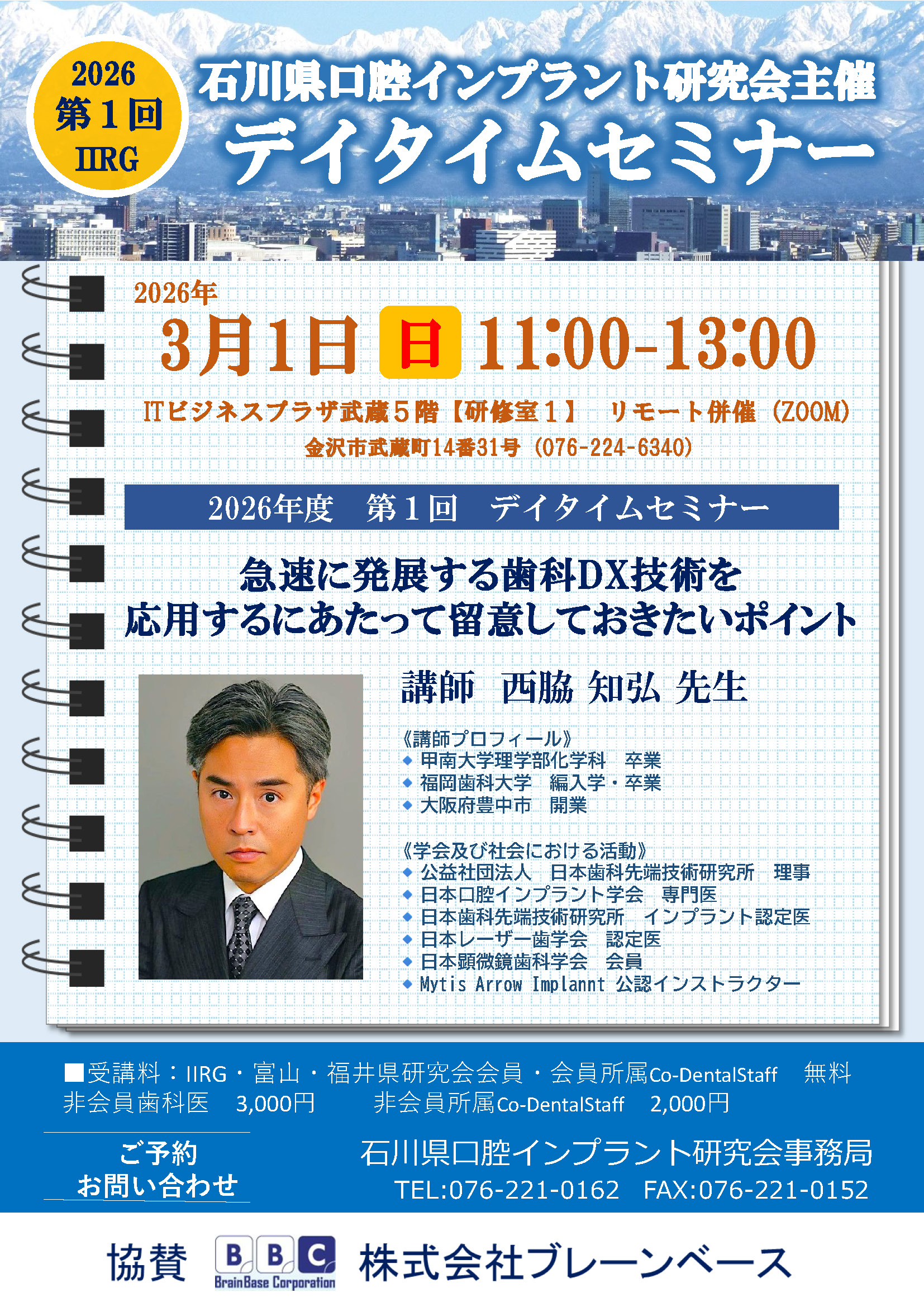 2021年04月04日石川県口腔インプラント研究会総会・特別講演会